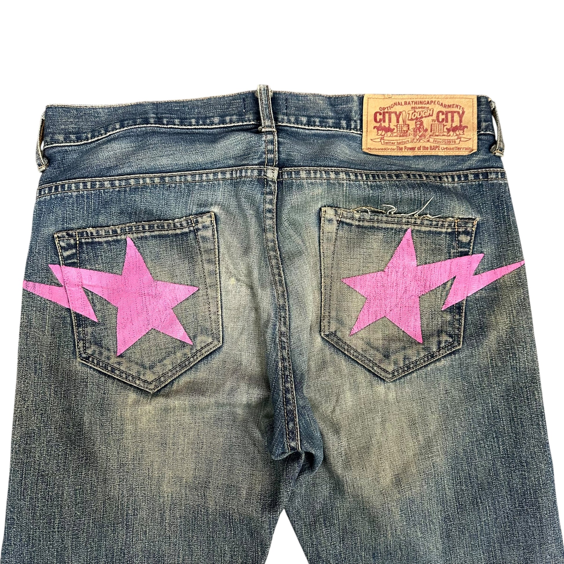 Bape Pink Star Faded Jeans